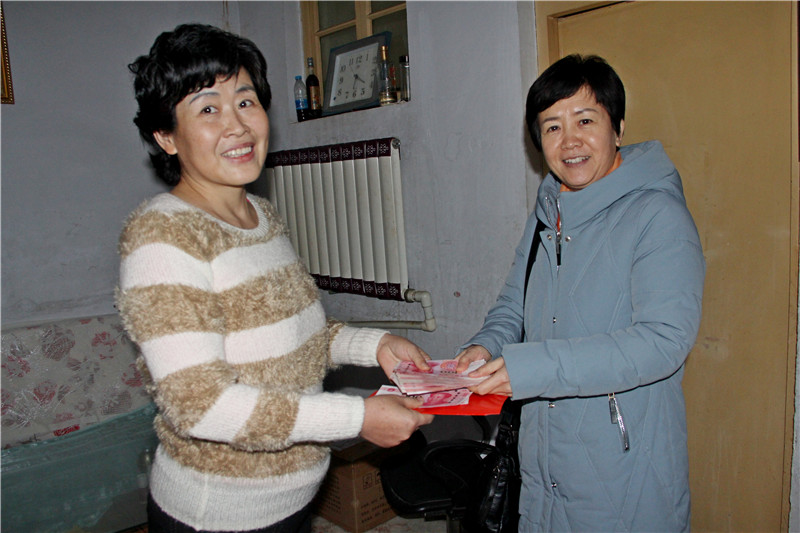 李?lèi)?ài)平總經(jīng)理助理為趙鳳娥送上慰問(wèn)金