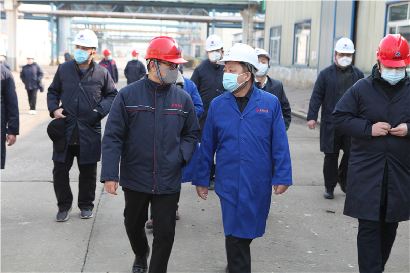 1月28日大年初四,河北省衛健委醫藥保健局靳文龍局長到我公司視察消毒產品生產及貯備情況,靳局長到我公司二車間二氯崗位和工信部應急物資貯備庫房現場進行了查看,對我公司的工作給予了充分的肯定,同時要求我公司克服困難,保證生產,滿足社會防控消殺需求,為打贏這場沒有硝煙的戰爭做出應有的貢獻。